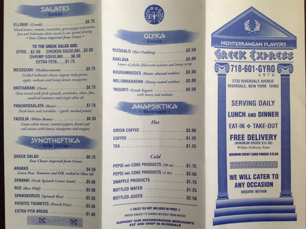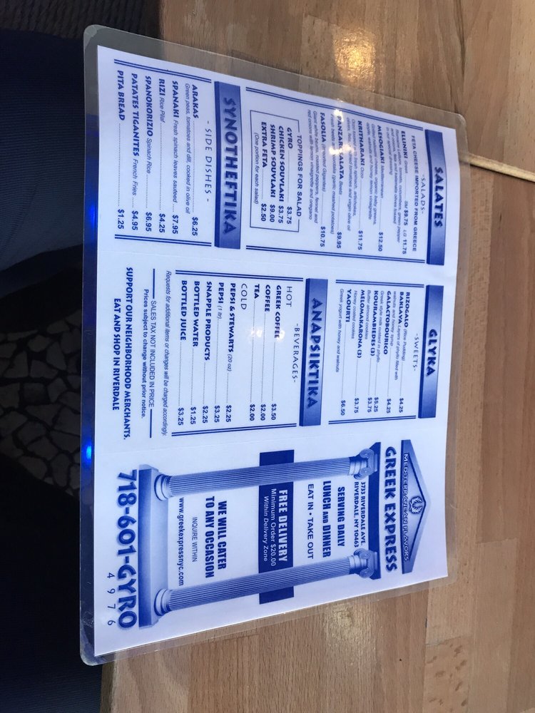 Welcome to Greek Express Bronx, a cozy gem located at 3733 Riverdale Ave in the Bronx. This restaurant offers an authentic taste of Greece, capturing the essence of its rich culinary tradition. Start your meal with delightful appetizers like crispy calamari or grilled octopus, drizzled with fresh lemon and olive oil. For a refreshing touch, the Elliniki Salad combines romaine, feta, and Kalamata olives tossed in a special dressing. Don't miss the vibrant kolokithokeftedes—zucchini croquettes that will excite your palate.